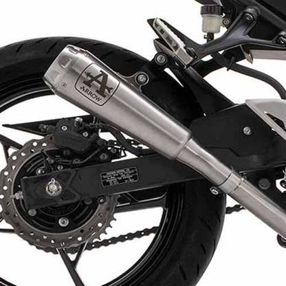 The silencers are secured to the bike by means of mounts welded to the main body, their cone-shaped design provides a reduction of dimensions and weight, but it also reduces the overall volume of the exhaust, thus limitating noise damping capabilities and the application on bigger or demanding engines.