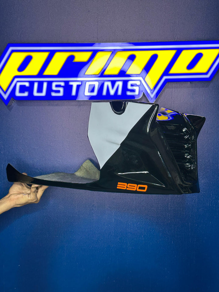 "The DUKE RACING UNDERBELLY is a must-have for any Duke 125/200/250/390 rider. Made of hard fiber material, it provides optimal protection for your bike's underbelly. Its lightweight design ensures no added weight while its customizability allows for a personal touch. Get the perfect fit and ultimate protection with DUKE RACING UNDERBELLY."