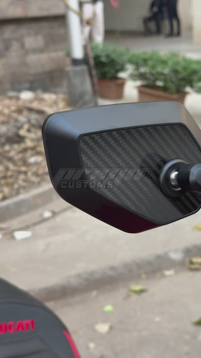 - Engineered with genuine carbon fiber accents and precision-machined aluminum alloy, the Fauvism Carbon Fiber Folding Mirror delivers superior rear visibility—up to 50% wider field of view than standard mirrors. The anti-glare coating minimizes headlight reflection for safer night riding, while the quick-folding mechanism protects against impact damage during reverse maneuvers. A universal ball joint enables full 360-degree adjustment, letting you optimize your sightline for any riding position. Sandblasted and anodized finishing ensures lasting corrosion resistance and a refined aesthetic built to withstand demanding conditions.
