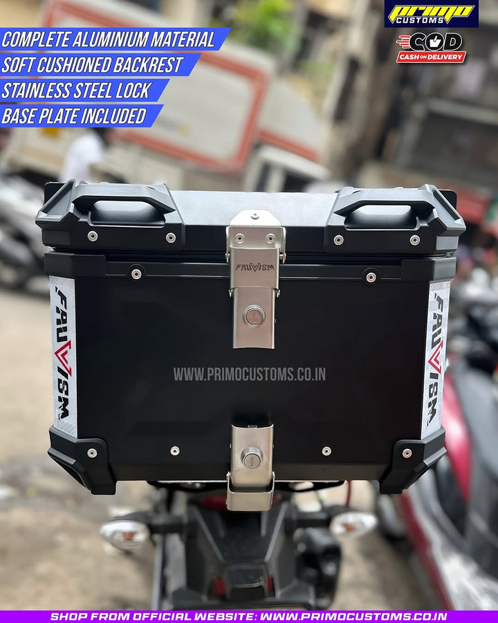 Experience the fusion of technology and automobile with the introduction of fauvism's latest product - India's first aluminium top box featuring fingerprint scanning technology for secure unlocking and locking. This waterproof top box has a 45L capacity and is compatible with all types of top racks. It also comes with a base plate and a comfortable soft cushion backrest.