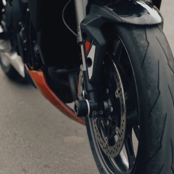 Enhance the durability and appearance of your Triumph Street Triple 765RS with this expertly designed front fork protector. Crafted to shield your forks from debris and damage, it ensures long-lasting performance and maintains optimal suspension function. Precision fit guarantees easy installation without compromising handling, making it an essential upgrade for riders seeking both protection and reliability.