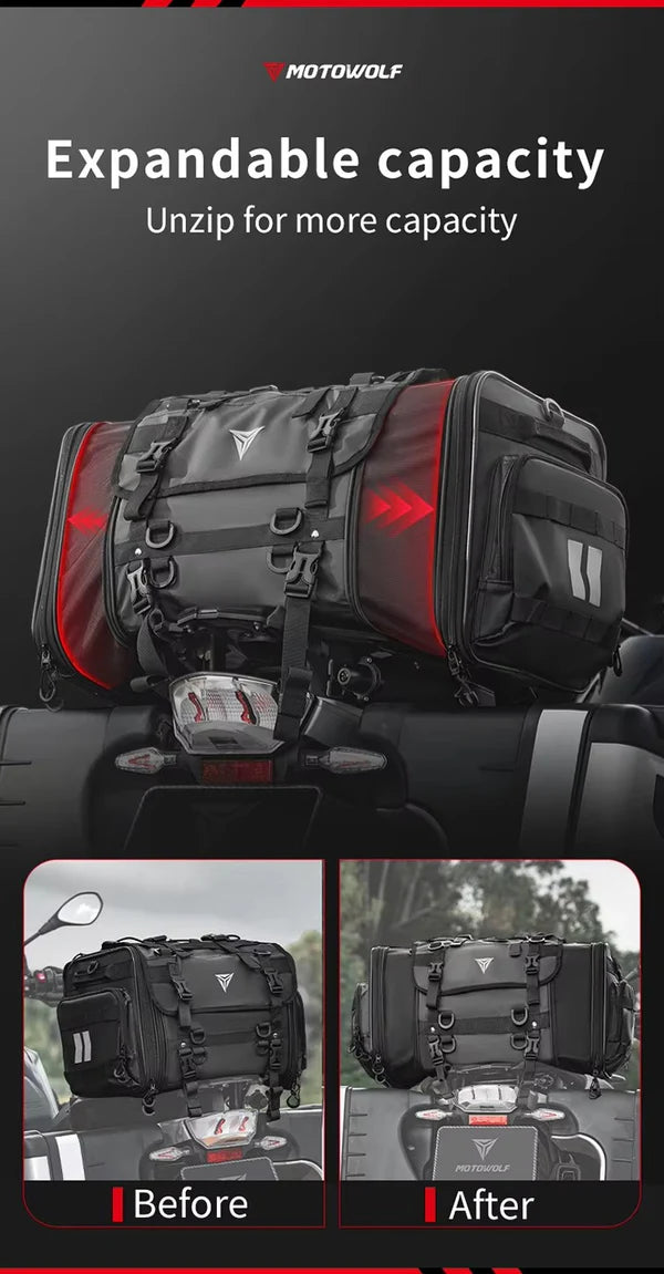 MOTOWOLF MDL0725 Expandable Motorcycle Rear Tail Seat Sling Bag 32L to 45L ▶️MOTOWOLF MDL0725 Seat Bag✅Multiple Size Options: Choose From...