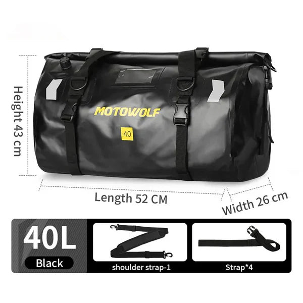 MOTOWOLF | Motorcycle Tail Bag - 40L Waterproof | Duffel Bag for Touring Adventure, Camping, Cycling - BLACK