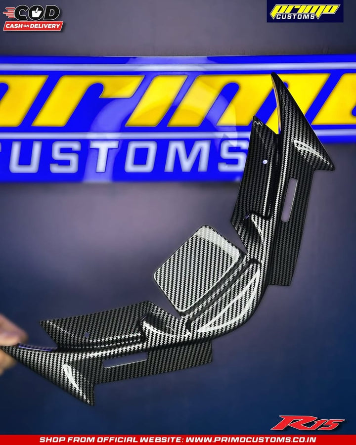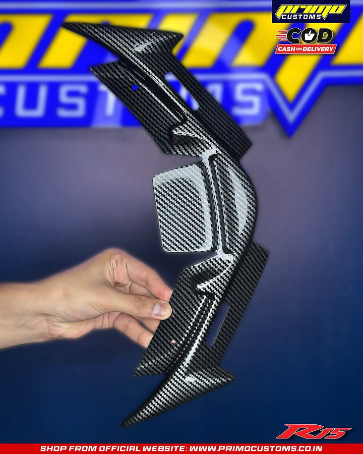 Elevate the style of your Yamaha R15 V4 with the Carbon Fiber Dipped Winglet. This premium accessory is crafted from high-quality carbon fiber dipped ABS plastic, offering a lightweight yet durable design that enhances aerodynamics and stability. The carbon fiber finish provides a sleek, race-inspired look while improving downforce and handling. Easy to install, the Winglet seamlessly integrates with your bike, making it an ideal upgrade for riders seeking both functional and aesthetic enhancements.